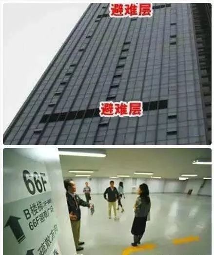 建筑高度大于100米的公共建筑應當設置避難層。從首層到第一個避難層之間的高度不宜大于50米。例如:層高為44層的建筑,就需要兩個避難層,一個在15層左右,一個在30層左右。