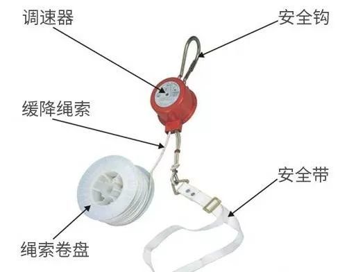 緩降器由掛鉤(或吊環)、吊帶、繩索及速度控制等組成,是一種可使人沿(隨)繩(帶)緩慢下降的安全營救裝置。它可用專用安裝器具安裝在建筑物窗口、陽臺或樓房平頂等處,也可安裝在舉高消防車上,營救處于高層建筑物火場上的受難人員。緩降器適用于高層逃生。工作時,通過緩降繩索帶動主機內的行星輪減速機構運轉與磨擦輪轂內的磨擦塊產生磨擦作用,保證使用者安全緩降至地面。