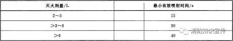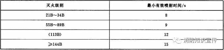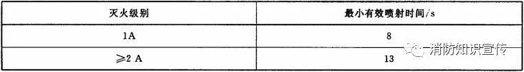 滅A類火的滅火器(水基型滅火器除外)在20℃時的最小有效噴射時間應符合表3的規定。