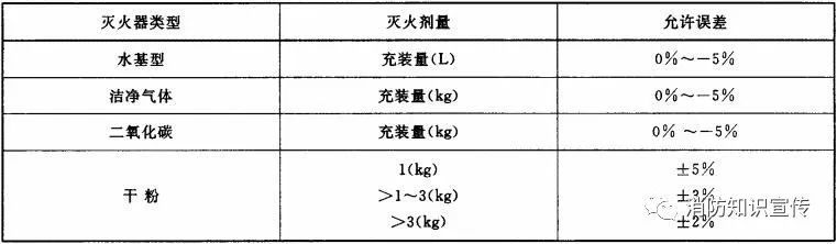 滅火器的總質量不應大于20 kg,其中二氧化碳滅火器的總質量不應大于23 kg,滅火器的滅火劑充裝總量誤差應符合表1的規定。