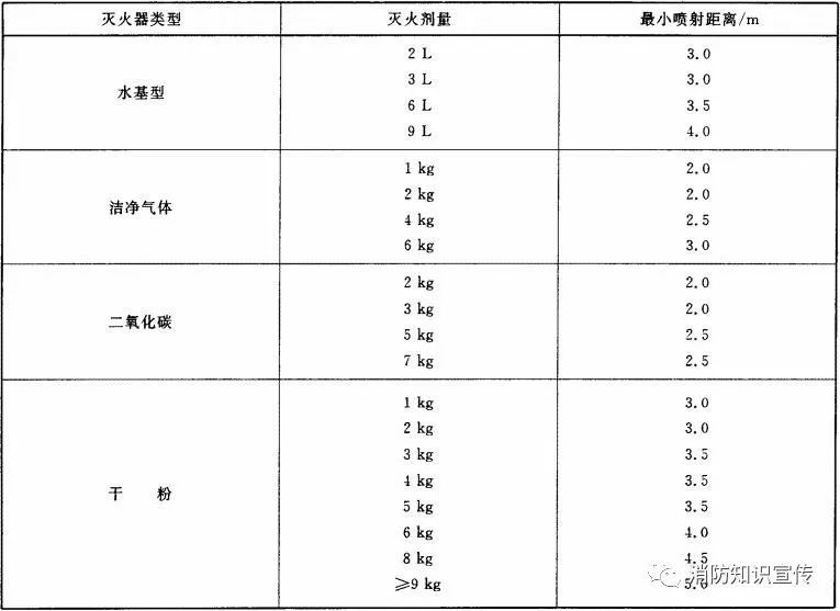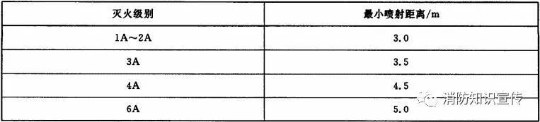 滅A類火的滅火器在20℃時的最小有效噴射距離應符合表5的規定。