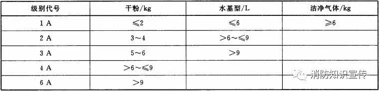滅A類火的滅火器其滅火性能以級別表示。它的級別代號由數字和字母A組成,數字表示級別數,字母A表示火的類型。
