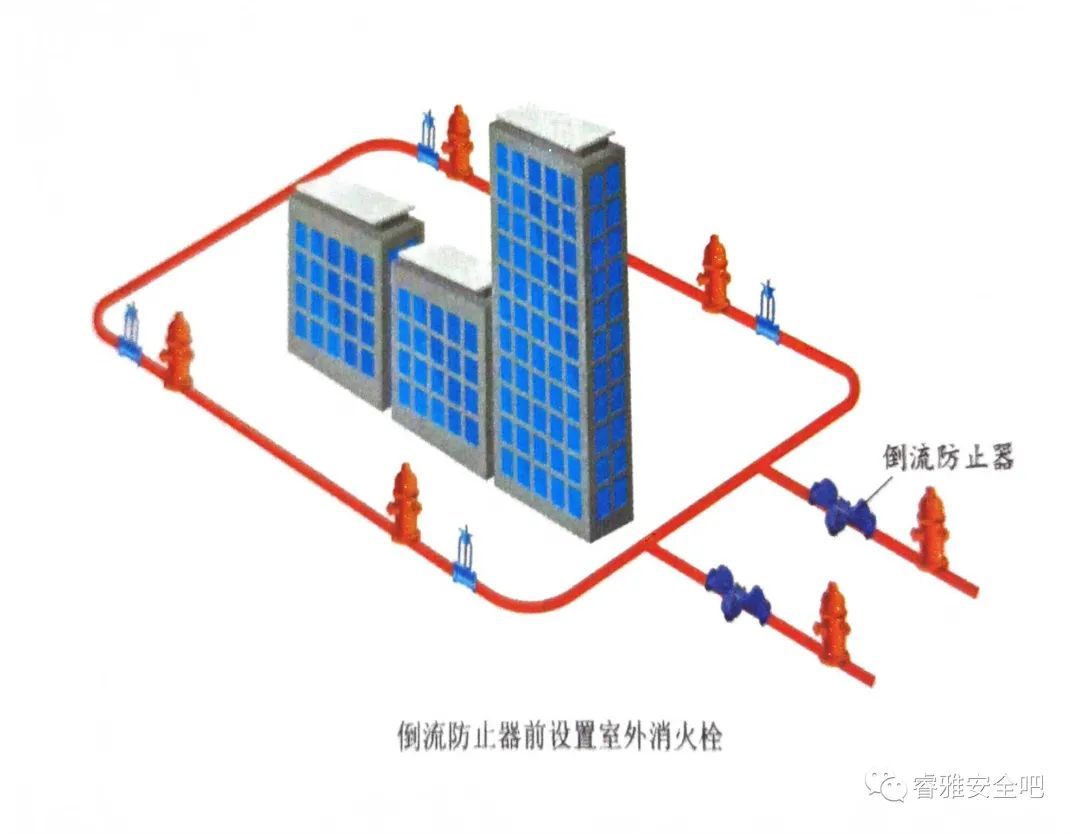 6.室外消防給水引入管當設有倒流防止器且火災時因其水頭損失導致室外消火栓不能滿足規范的要求,應在該倒流防止器前設置一個室外消火栓。