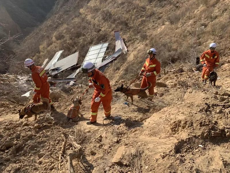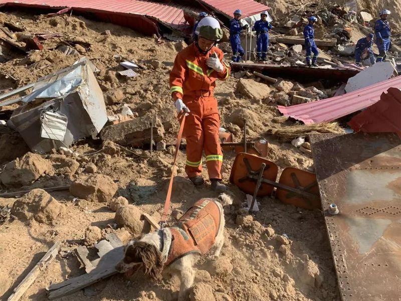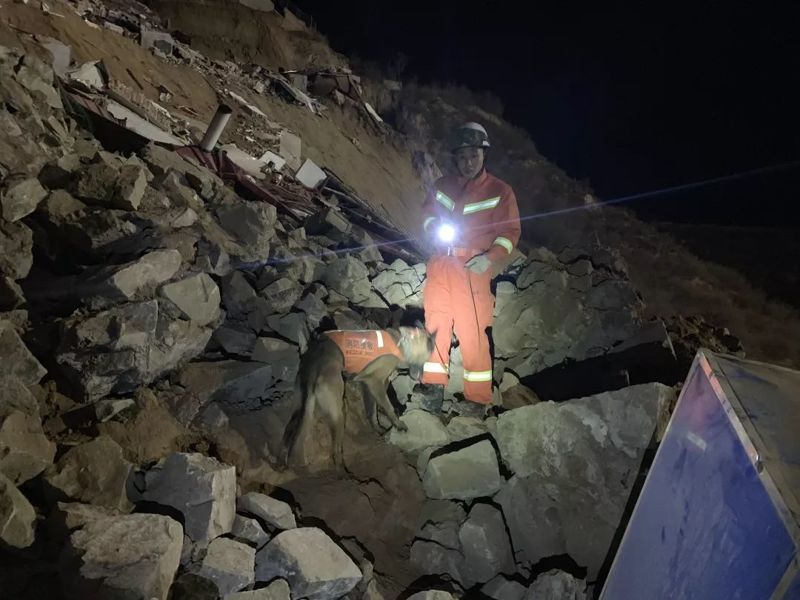 和英勇的指戰(zhàn)員并肩在一起作戰(zhàn)的還有搜救犬們。參加此次搜救的搜救犬全部技術(shù)過硬,經(jīng)驗豐富,其中幾只犬參加過全國的比武競賽,有很強的實戰(zhàn)能力。