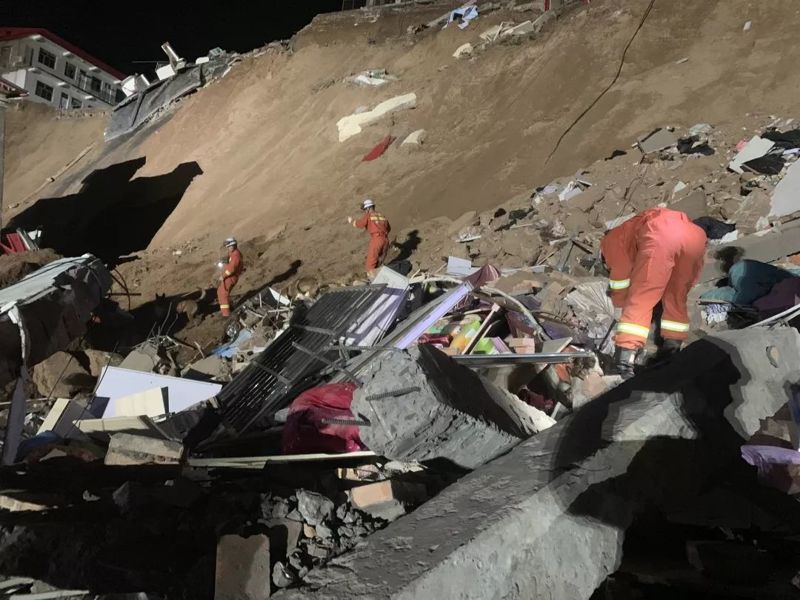 總隊參謀長管延忠介紹,山體滑坡后,現(xiàn)場呈現(xiàn)出兩個“作業(yè)區(qū)”。“作業(yè)區(qū)”即房屋垮塌之后形成的廢墟帶。這些廢墟帶之上是很不穩(wěn)定的山體,隨時可能發(fā)生二次塌方;廢墟帶之下是山體垮塌形成的新的山坡,新的山坡傾斜角度將近30°,很難攀爬。對救援來說,一方面,“作業(yè)區(qū)”面積狹長,不能夠同時容納太多人,救援隊伍難以展開;另一方面,廢墟的結(jié)構(gòu)極不穩(wěn)定,滑坡體土質(zhì)松軟,很多支撐環(huán)環(huán)相扣,牽一發(fā)就可能動全身,一不小心導(dǎo)致二次塌方便會給救援人員造成人身傷害。