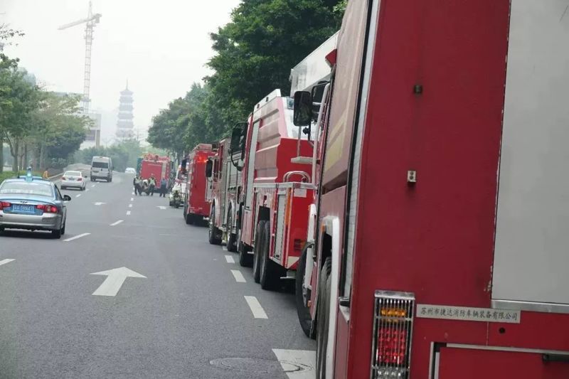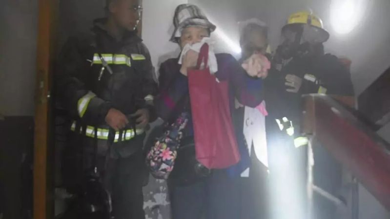 攜帶水帶、干粉滅火器和破拆器材徒步前往火樓層
