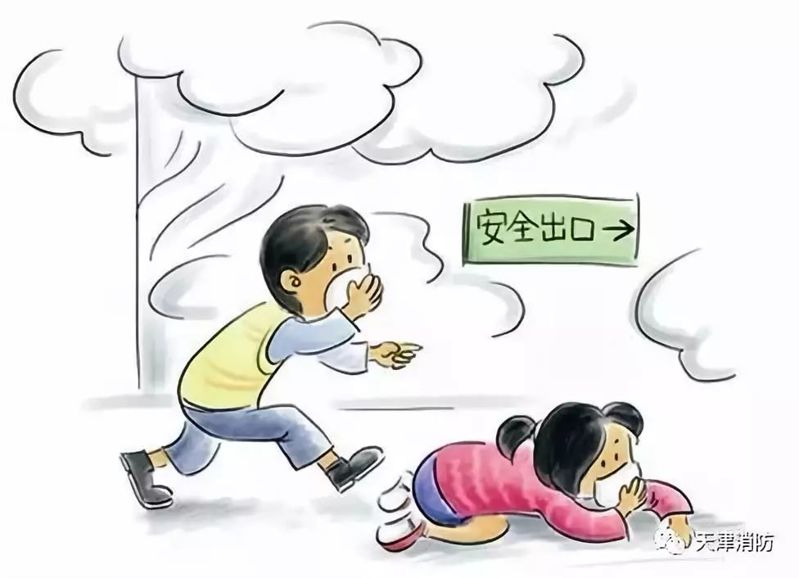 火災發生時煙霧聚集在上部空間,所以在逃生中應盡量低身或彎腰前進。
