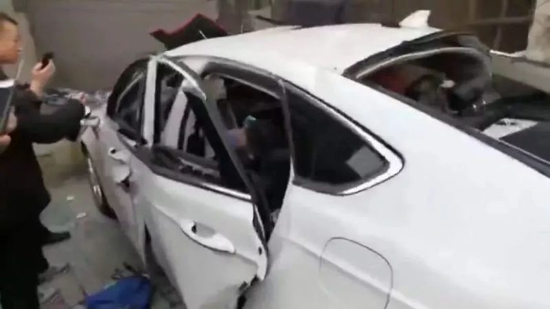 當(dāng)人們趕到現(xiàn)場時,只見一輛白色轎車,4個車門嚴重變形,車玻璃全部被震碎,車內(nèi)凌亂不堪,一名男子側(cè)躺在座椅上……