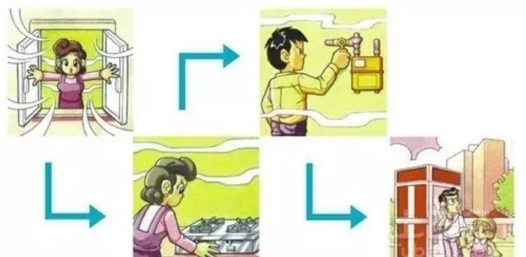 離開至室外安全區域,告知燃氣公司并撥打119報警。