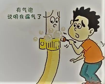 定期檢查,用戶要經常檢查氣瓶、膠管及灶具是否漏氣。檢查時,可用肥皂水涂在可能產生漏氣的地方,如膠管的接頭、鋼瓶、灶的開關等處,若有漏點,則該處會吹起氣泡。