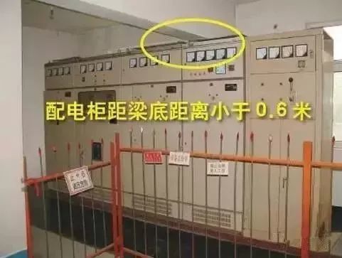 排查依據:JGJ 16-2008《民用建筑電氣設計規范》4.6.2 屋內配電裝置距頂板的距離不宜小于0.8m;當有梁時,距梁底不宜小于0.6m。