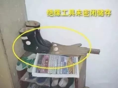 排查依據:DB 11527-2008《變配電室安全管理規范》5.18.5 絕緣靴、絕緣手套應存放在密閉的櫥內,并與其他工具一表分開存放。