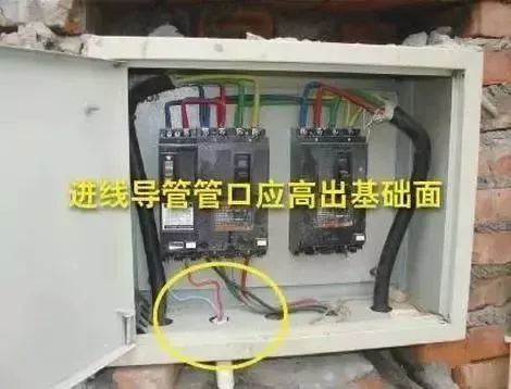 排查依據:GB 50303-2002《建筑電氣工程質量驗收規范》14.2.5 室內進入落地式柜、臺、箱、盤內的導管管口,應高出柜、臺、箱、盤的基礎面50~80mm。