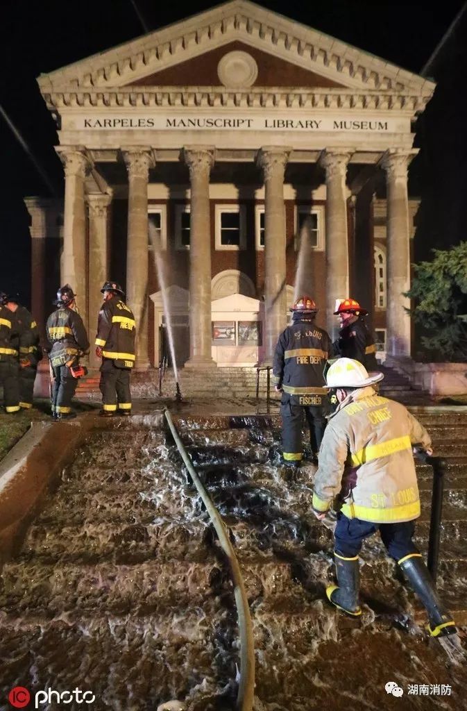 據消防部門在社交網絡“推特”上說,美國圣路易斯的卡佩爾斯手稿圖書館發生火災,約有80名消防員進行了兩個小時的滅火工作,爭先恐后地將箱子、雕像和其他文物拖走。