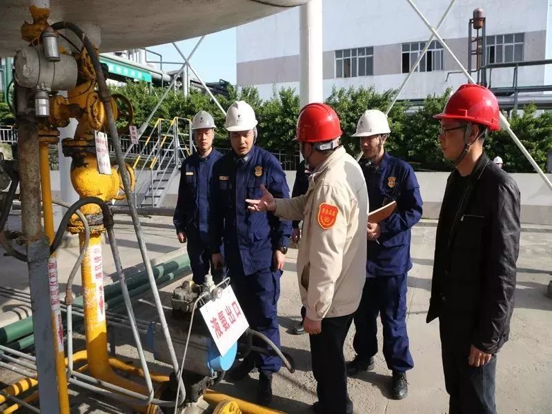 在宜都市友源實業公司,王謀剛支隊長帶領檢查人員查看了苯儲罐、甲苯儲罐、消防泵箱、冷卻塔等重點區域的消防安全情況。檢查發現,該公司存在儲罐與防護堤距離不足、罐區安全空地不夠等問題。鑒于該企業在沿江一公里之內,即將整體搬遷至新廠區,王謀剛支隊長希望該企業正視問題,不能因為搬遷忽視現有消防隱患,任何時候不能以犧牲安全為代價,針對檢查中發現的問題要拿出具體可行的消防安全防范措施。
