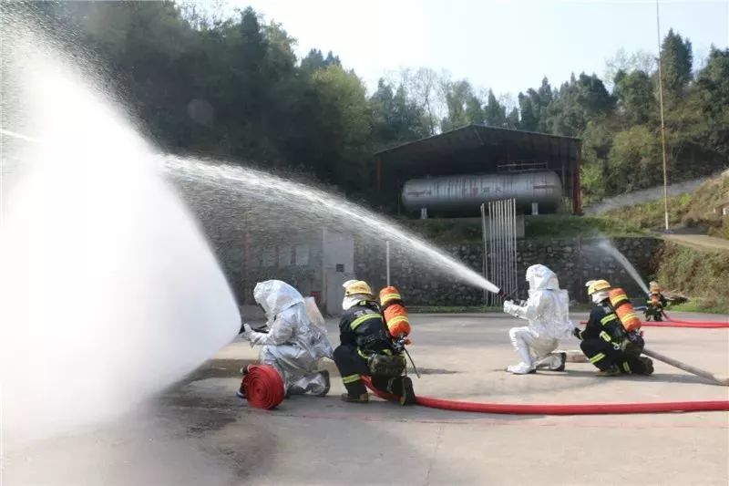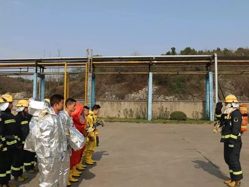 秭歸縣消防中隊深入轄區鴻發燃氣公司開展熟悉演練工作,強化對轄區易燃易爆、?;穲鏊氖煜こ潭?。