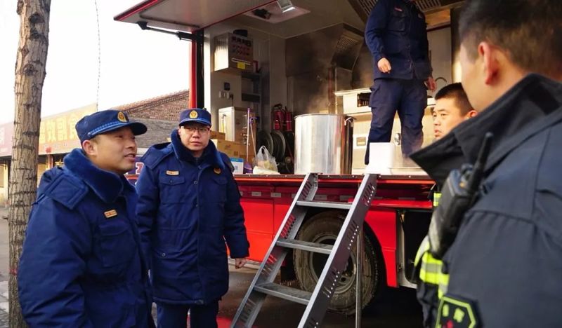 30日零時25分,由焦化路中隊中隊長李韜宇帶隊的餐飲保障車一車4人到達支隊集結地點后,沒有休息片刻就開始為指戰員們準備食物和熱水,由于指戰員們是分組進行巡邏、供水保障等工作,大家只能輪流來補給,餐飲保障車4人忙碌了一整晚,直到凌晨5點才結束夜間補給。