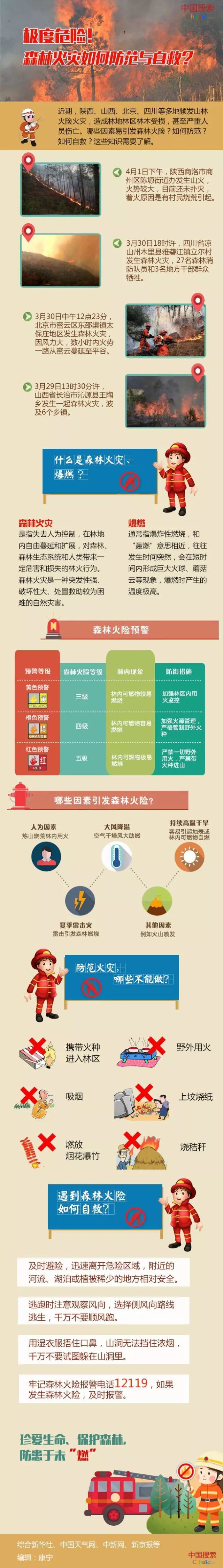 “天干物燥、小心火燭”。近期,氣溫回升,大風天氣增多,森林火災進入一個易發高發時期。哪些因素引發森林火險?如何防范火災發生?遇到火險應如何自救?這些知識需要了解。
