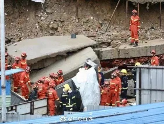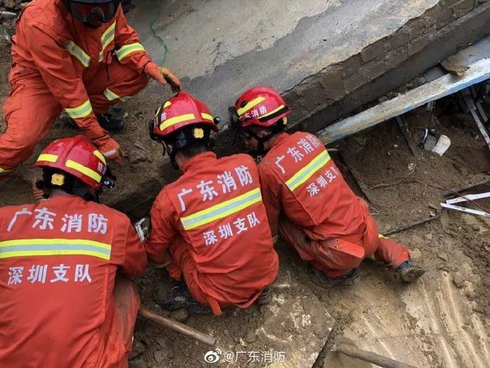 4月20日14時許深圳南山區一工業園因連日暴雨導致一擋土墻垮塌發生地面坍塌兩人被埋困深圳消防迅速展開搜救
