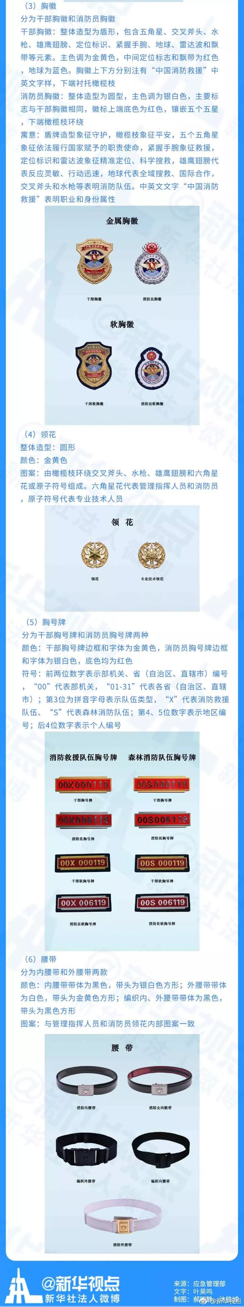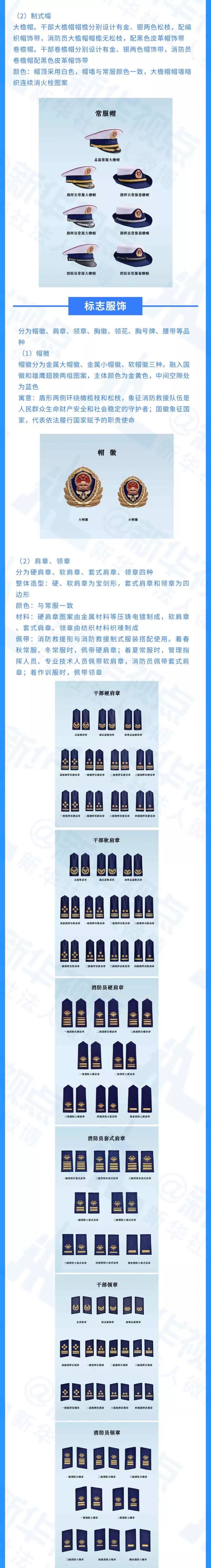 《辦法》明確,消防救援銜標志佩帶在肩章和領(lǐng)章上,肩章分為硬肩章、軟肩章和套式肩章,硬肩章、軟肩章為劍形,套式肩章、領(lǐng)章為四邊形;肩章、領(lǐng)章版面為深火焰藍色。消防救援人員著春秋常服、冬常服和常服大衣時,佩帶硬肩章;著夏常服、棉大衣和作訓(xùn)大衣時,管理指揮人員、專業(yè)技術(shù)人員佩帶軟肩章,消防員佩帶套式肩章;著作訓(xùn)服時,佩帶領(lǐng)章。