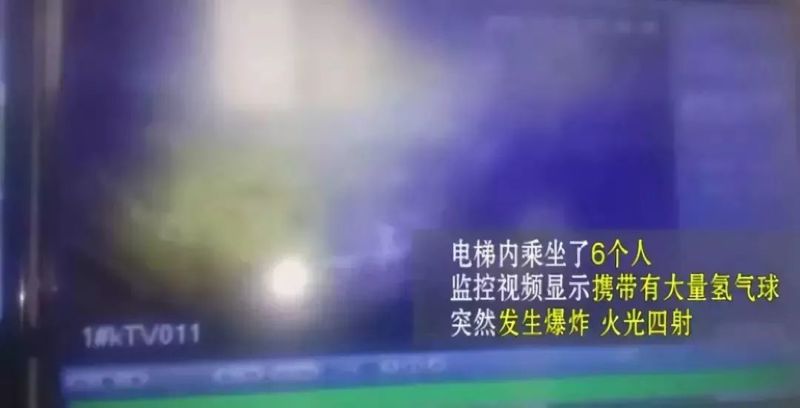 2月14日晚上十一點多,應朋友之約,楊先生來到興平市一家KTV,上了電梯發現電梯內還有五人同乘,其中一人手中拿著十來個氫氣球,就在電梯上行過程中,氣球突然爆炸,電梯內連楊先生在內共六人無一幸免全部被燒傷。