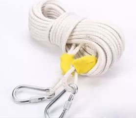 一根繩逃生無門的情況下,一根繩可以幫助我們從陽臺順利脫險。一般建議3—5樓的居民在危急時使用。小拇指一般粗的就可以;長度應根據自家的樓房高度情況選擇,寧長勿短;內芯為軍用航空鋼絲,外包由尼龍線編織而成的逃生繩是首選;逃生雖然匆忙,但一定要綁堅固。在使用逃生繩時,事先在一些堅硬的地方墊上一些床單衣物,防止逃生過程中磨斷繩索。為了防止突發火災時手忙腳亂,平時可以把繩子固定在室內堅固的地方,一旦發生火災,就可以救急逃生。