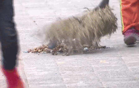 ↑ 環衛工人在清理爆炸后附近街道上的碎玻璃