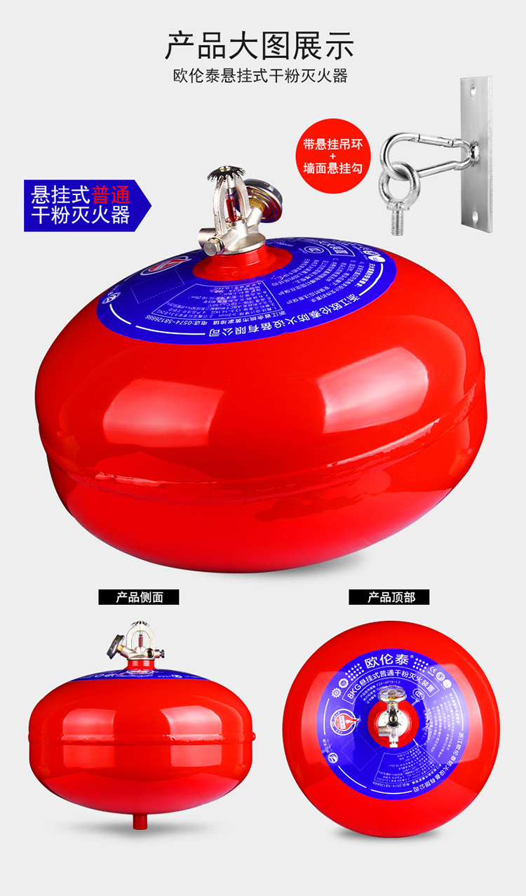 懸掛式自動干粉滅火裝置滅火原理:懸掛式滅火裝置在噴嘴部位裝有感溫玻璃泡,在正常情況下,玻璃泡上端頂住噴嘴。